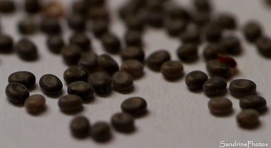 Les graines, autre nom donné aux oeufs, sont arrivées, reçues par la Poste le 3 août. Elles mesurent à peine 1 mm. De forme ovale, elles sont plates et légèrement "cabossées" sur le dessus. De couleur brune, pour l'instant, elles deviendront bleu-gris sous l'imminence de l'éclosion. Elles n'attendent plus que mes bons soins pour éclore... Une température comprise entre 20° et 23°, un récipient d'eau pour l'humidité ambiante... 15 jours à attendre et à observer... 6 août - Jour 1 : Je n'ai pas eu besoin d'attendre si longtemps ! Les premières naissances ont eu lieu ce matin. Je leur proposais immédiatement des feuilles de Mûrier Platane coupées en fines lamelles pour faciliter le grignotage. Et elles ne se sont pas faites prier. On ne les appellent pas les "magnan" (sans "s"), "goinfres" en occitan, pour rien ! Les oeufs éclos sont maintenant tout blancs, légers comme l'air, avec un opercule bordé de petites taches noires, trace de l'évasion des petites larves. Celles-ci mesurent entre 2 et 2,5 mm de long. Elles sont presque noires, avec un petit "collier" crème, de long poils gris clair et la tête noire.