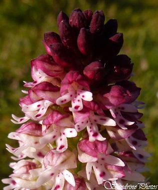 Premier Épipactis de l'année à fleurir dans le sud de la Vienne, l'Épipactis microphylla est vraiment très discret et bien difficile à remarquer. Aucune rosette au sol, une tige grêle grisâtre et velue, de toutes petites fleurs verdâtres retombantes légèrement teintées de pourpre, et de courtes feuilles poussant en spirale autour de la tige. Cette orchidée pousse sur sol calcaire, à la lisière des bois. Elle est protégée en Poitou-Charentes. (29/05/2014) ***** Orchis à deux feuilles - Platanthera bifolia L'Orchis ou Platanthère à deux feuilles ressemble énormément à l'Orchis verdâtre, mais en regardant de près ses polinies, on peut remarquer une différence sur leur inclinaison. En effet, les polinies de l'Orchis verdâtre sont écartées alors que celles de l'Orchis à deux feuilles sont rapprochées et parallèles. L'Orchis à deux feuilles est également très parfumé, alors que l'Orchis verdâtre n'a aucune odeur. Installés dans le très beau Gîte des Eyrials, à Saillac, chez Isabelle et François, nous avons pu découvrir la richesse botanique des prairies sèches du sud de la Corrèze. Pas moins de 16 espèces d'orchidées sauvages différentes le même jour ! Les Eyrials, un gîte labélisé "Eco-label" et "Tourisme et handicap", proposant un très grand nombre d'activités sur place, jeux, piscine, vélos, relais motos-cyclos, dans un cadre pittoresque tout près des plus beaux villages de France tels que Collonges-La-Rouge, la cité "aux vingt-cinq tours". http://www.leseyrials.com/ (Saillac, Corrèze, le 15-05-2017) ***** Orchis verdâtre - Platanthera clorantha Nouvelle espèce d'orchidée sauvage répertoriée à Bouresse en 2013, l'Orchis verdâtre commence à pousser au cours du mois d'avril, mais la floraison ne commence réellement qu'en mai. Cette plante a une longue tige et quelques feuilles à la base. Elle peut atteindre 80 cm. Ses petites fleurs sont blanchâtres à verdâtres avec un long labelle pointu et des pollinies (petits sacs à pollen) divergents ( Par opposition à ceux de l'Orchis à deux feuilles, qui sont parallèles). Voir plus de photos de l'Orchis verdâtre ***** Orchis brûlé - Neotinea ustulata Orchidée de printemps, l'Orchis brûlé pousse sur les côteaux calcaires rocailleux bien exposés. La grappe de fleurs est tout d'abord pourpre foncé. Puis, elle laisse place en s'épanouissant à de toutes petites fleurs blanches tachetées de pourpre. L'extrémité de l'inflorescence reste pourpre et donne cet aspect "brûlé" à la fleur. (17/04/2014) Voir plus de photos